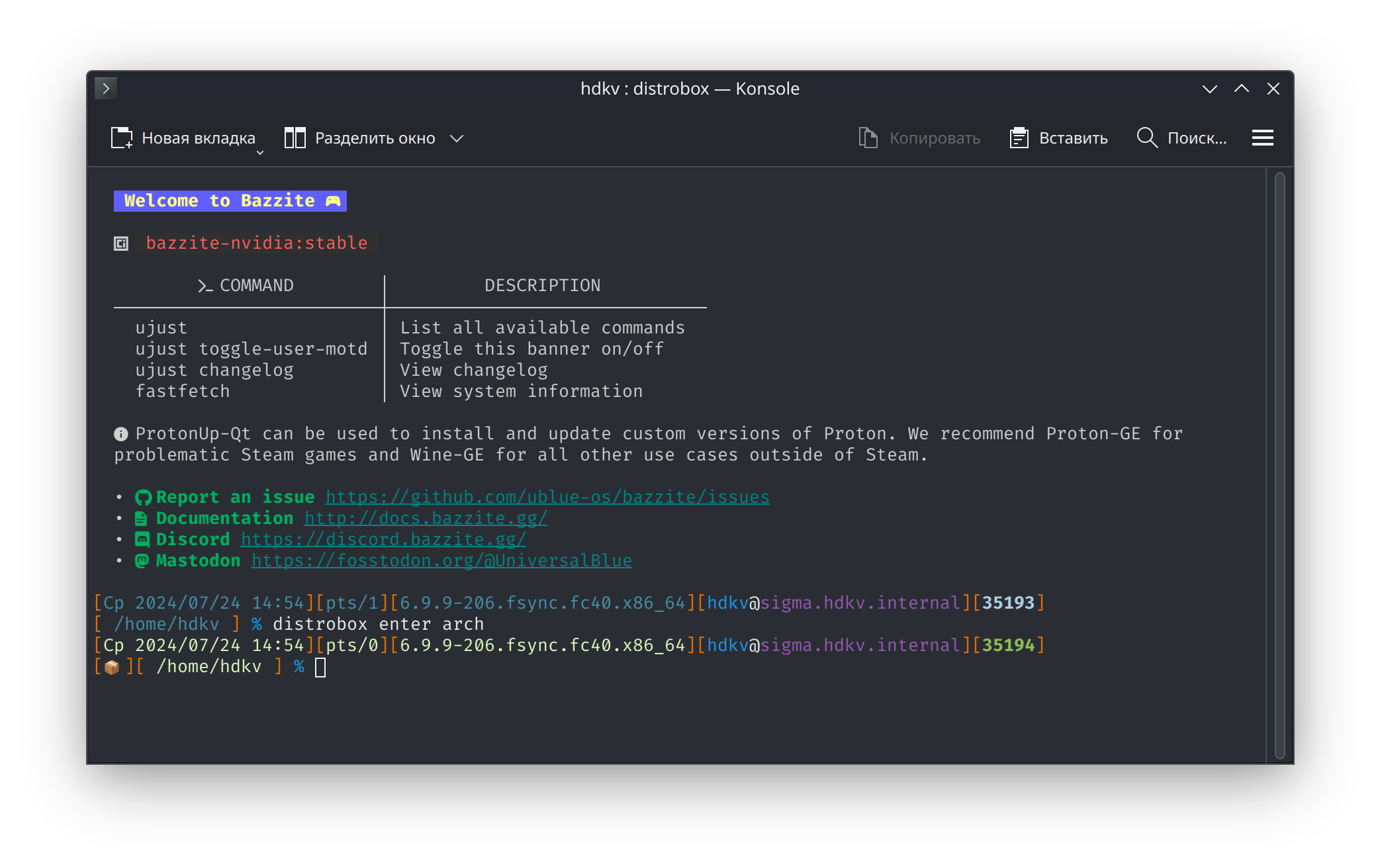 Distrobox это просто самый популярный вид интерактивного шелла внутри контейнера.